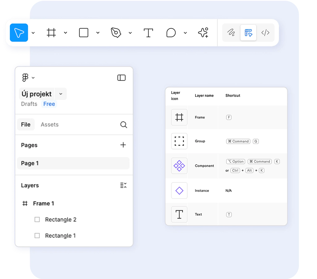 Az első modulban mindent megkapsz, ami ahhoz kell, hogy otthonosan mozogj a programban. Lépésről lépésre megtanulod, mi a Figma és hogyan működik, hogyan regisztrálj, állítsd be a fiókodat, és navigálj a kezelőfelületen. Megismered a frame-eket, csoportokat és rétegeket, és megtanulod, hogyan építs logikus szerkezetet a terveidben.