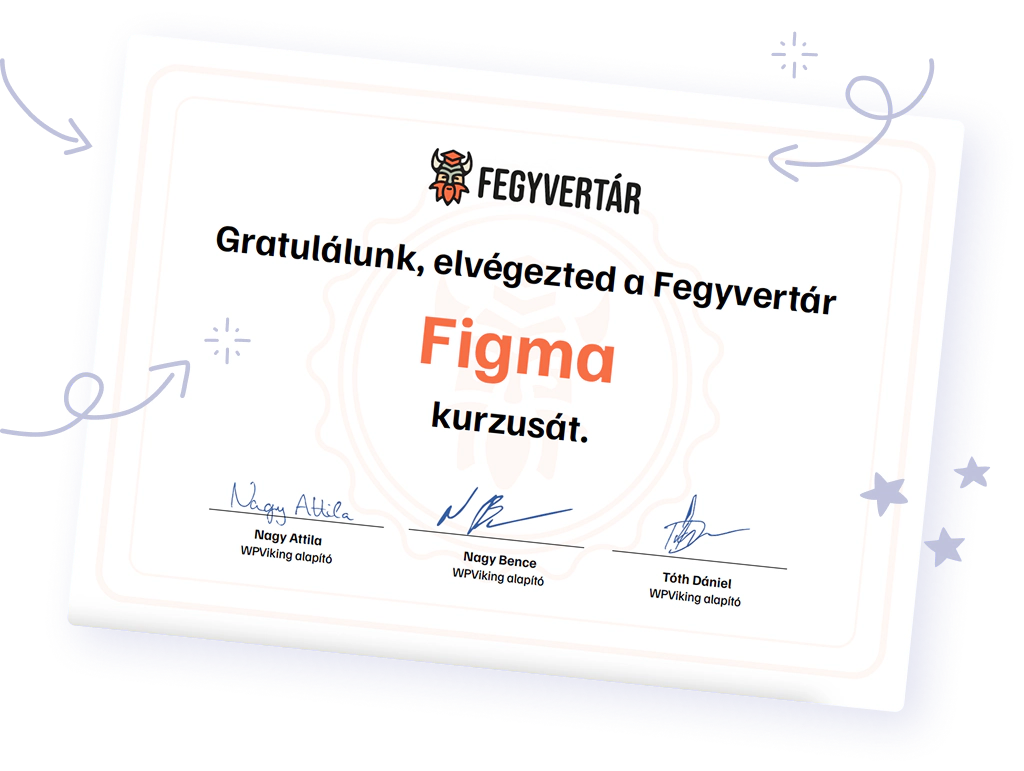 A kurzus végén, ha elvégezted a gyakorlófeladatokat, megkapod a megérdemelt oklevelet, amely igazolja: alapszinten kitanultad a Figmát, és magabiztosan tudod használni UX/UI tervezéshez.