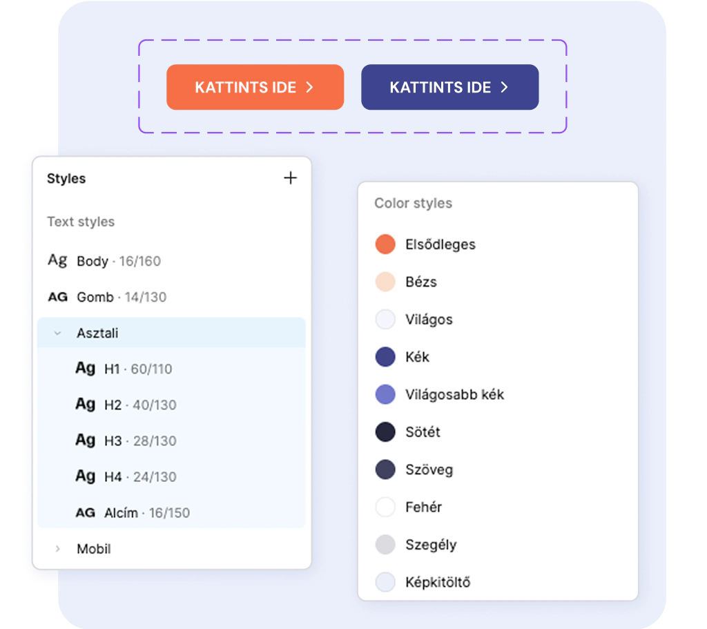 Ha már otthonosan mozogsz a Figmában, a következő lépés a Webdesign kurzus. Itt megtanulod, hogyan készíts komplett weboldalterveket, hogyan építs fel vizuális rendszereket, és hogyan készítsd elő kulcsrakésszé a designjaidat.