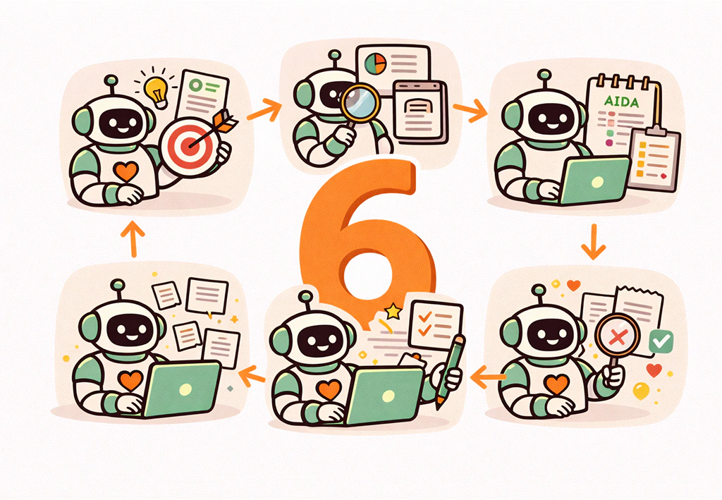 A céltól a korrektúráig, mindegyik fázisban AI-jal. Erre épül mindeféle szöveg, mindegy hogy hirdetést, emailt, landing oldalt vagy videó scriptet írsz.